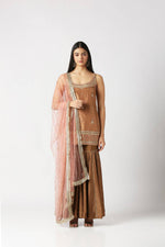 Mocha Brown Short Kurta With Sharara & Dupatta Set