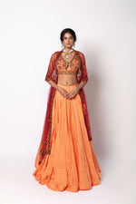 Melon Orange Lehenga with Blouse & Dupatta Set