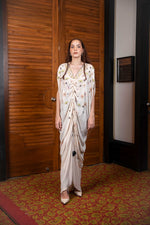 Kaftan with gather details in front for indo-western cocktail wear. Paired with hand embroidered churidar.