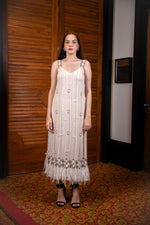 Stylish strappy hand-embroidered kurta with ostrich feather hem detail.