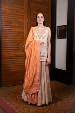 Style Note: Classic beige kurta & dupatta set Be the centre of attention with this soft pastel beige gharara suit. The embroidered work over the dress appears to be chic and perfect for party wear. This suit comes with gharara bottom and a with embroidery Glam up this festive occasion with kitten heals ,jhumka earing and figaro necklace. Carry a clutch for all your essentials