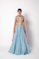 Dusk Blue Lehenga & Sweetheart Blouse with Dupatta Set